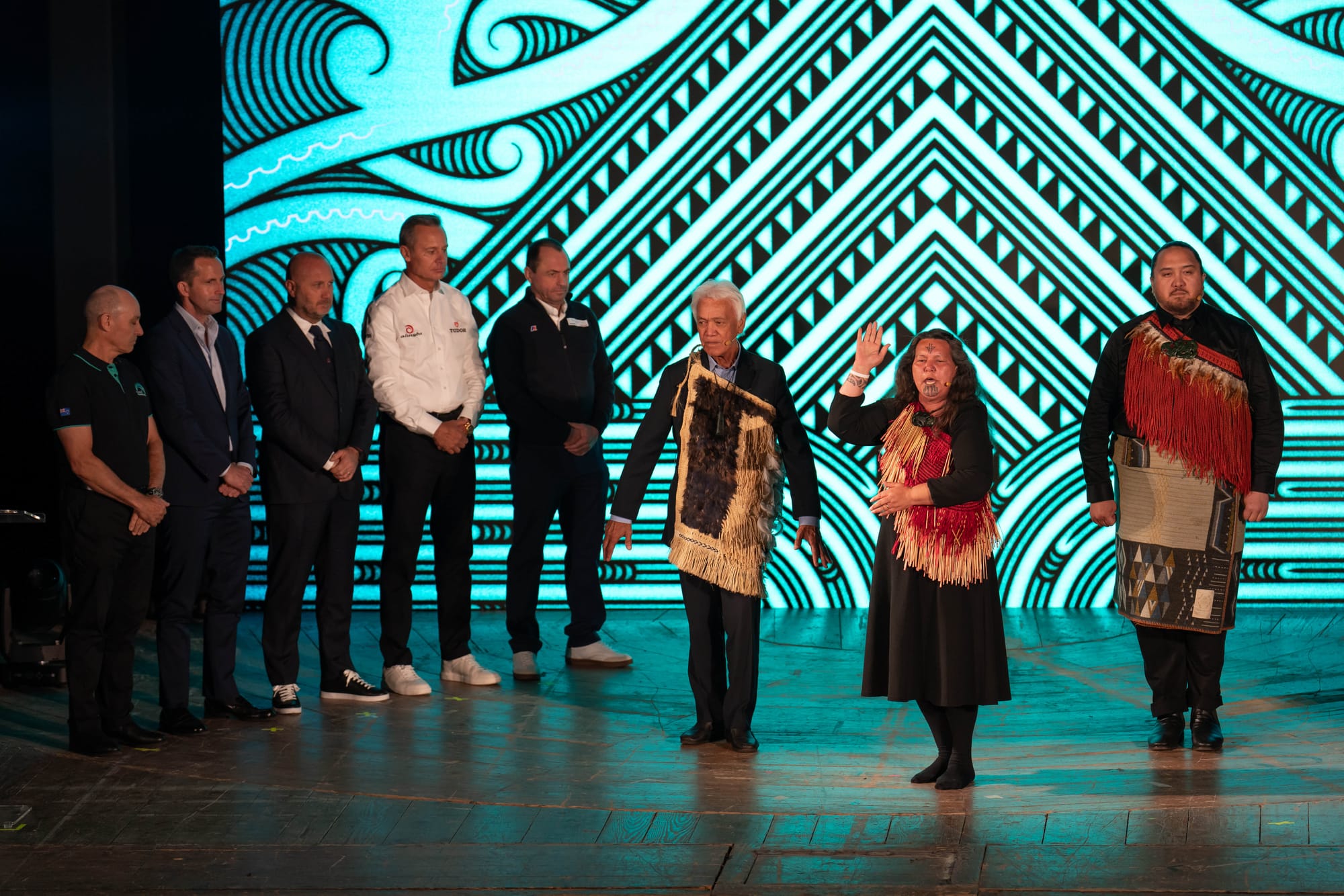 Il pubblico ha assistito a un potente benvenuto culturale guidato da Ngāti Whātua Ōrākei, iwi māori (tribù indigena) con base ad Auckland, Nuova Zelanda, in rappresentanza dell’attuale Defender, Royal New Zealand Yacht Squadron ed Emirates Team New Zealand.