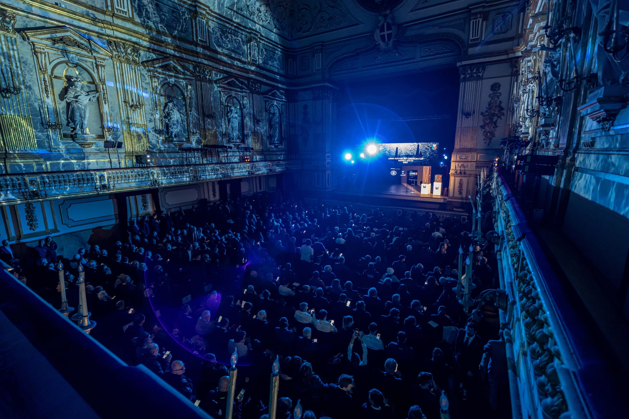 I delegati al Palazzo Reale hanno seguito una presentazione ampia e articolata, incentrata principalmente sulla “Road to Naples” e sulla considerevole sfida sportiva che li attende. Prima dell’annuncio ufficiale della sponsorship e dell’impegno rinnovato di Louis Vuitton verso l’America’s Cup, confermato da Pietro Beccari, Chief Executive Officer di Louis Vuitton, sono stati presentati i rappresentanti dei cinque team attualmente iscritti a competere per la Louis Vuitton 38ª America’s Cup: Emirates Team New Zealand (NZL), GB1 (GBR), Luna Rossa (ITA), Tudor Team Alinghi (SUI) e K-Challenge (FRA).