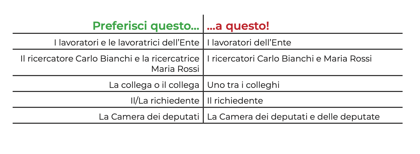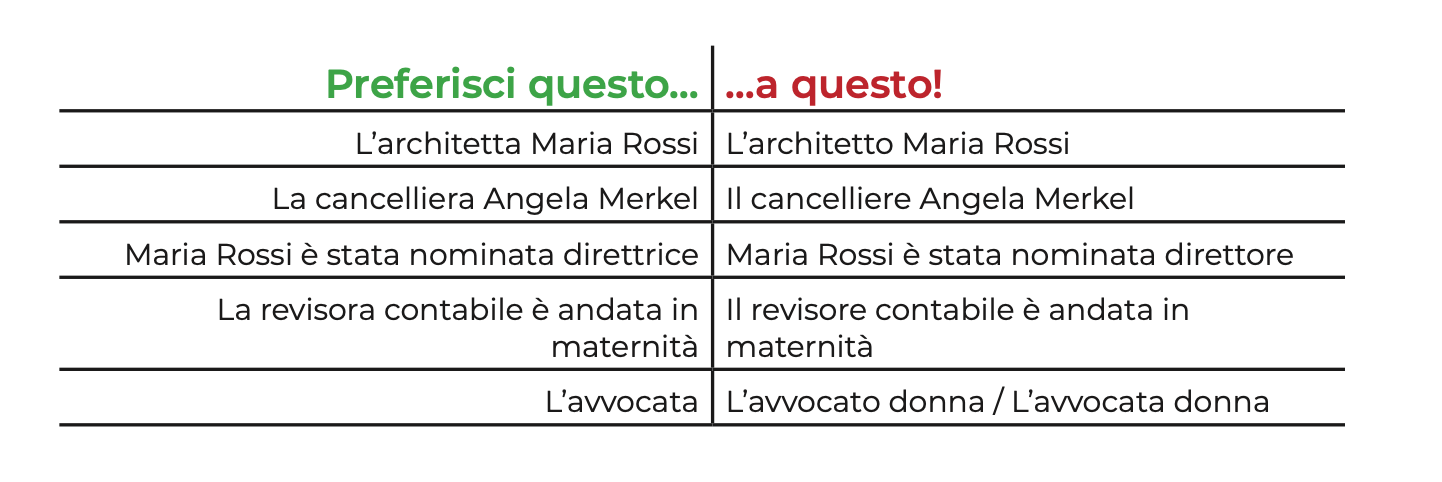 Tra le indicazioni principali, l'utilizzo della forma femminile quando ci si riferisce ad una persona di genere femminile.
