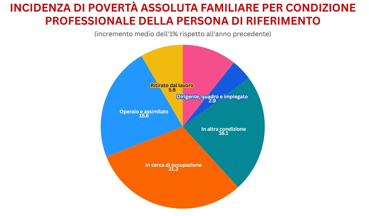 Il lavoro non è più una garanzia contro la povertà. È questa una delle trasformazioni più profonde e preoccupanti degli ultimi anni. Tra le famiglie di operai, l’incidenza della povertà assoluta raggiunge il 15,6% e sale al 18,7% in presenza di minori. In altre parole, avere un lavoro non basta più per vivere dignitosamente.