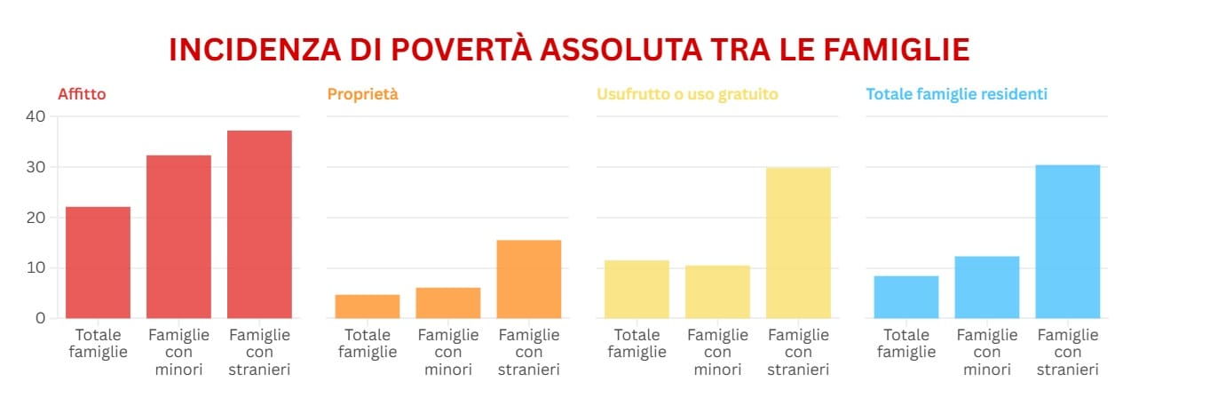 Non tutti i fattori incidono allo stesso modo sulla povertà. Alcuni diventano veri e propri spartiacque. Il titolo di studio è uno dei principali elementi di protezione: chi possiede solo la licenza elementare registra un’incidenza di povertà del 14,4%, mentre per chi ha almeno un diploma il dato crolla al 4,2%. L’istruzione, quindi, non è solo un’opportunità: è una barriera contro l’indigenza. Allo stesso modo, la condizione abitativa resta determinante. Vivere in affitto espone a un rischio molto più elevato rispetto alla proprietà, rendendo la casa uno degli ultimi strumenti di stabilità economica.