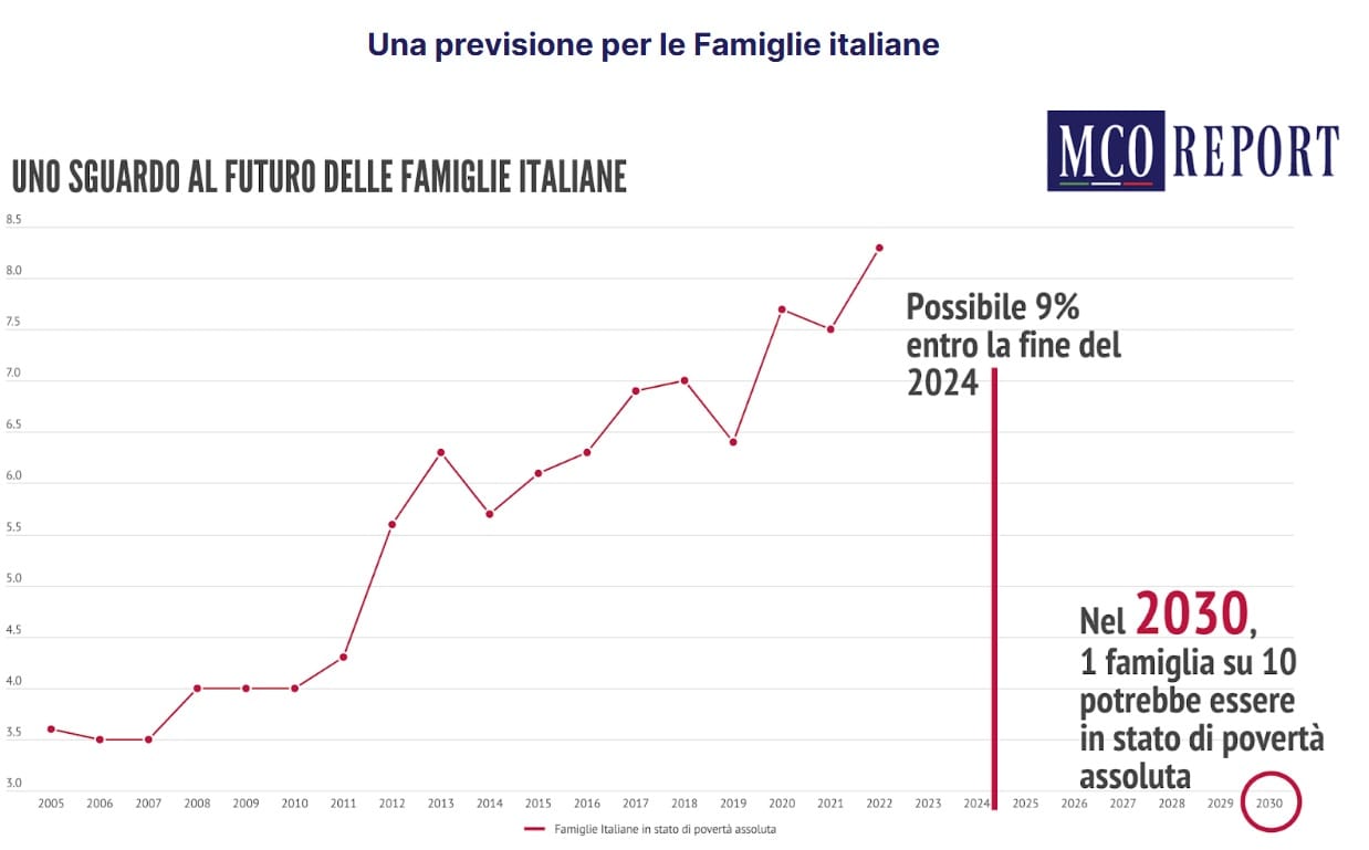 Le proiezioni indicano un trend preoccupante: entro il 2030 una famiglia su dieci potrebbe trovarsi in povertà assoluta. È un dato che va oltre l’economia. Riguarda la tenuta sociale del Paese, la fiducia, la mobilità, la possibilità stessa di costruire un futuro. Quando la povertà diventa diffusa, cambia tutto: i consumi, le scelte, le aspettative.