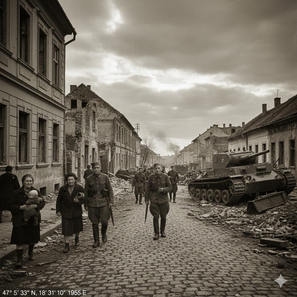 Abbiamo voluto testare personalmente questa tecnologia per comprendere fino a che punto possa spingersi. Abbiamo chiesto a Nano Banana Pro di generare un’immagine associata alle coordinate 47° 5' 33’’ N, 18° 31' 10’’ E, collocate In Italia, durante il periodo tra aprile e maggio del 1945. Si tratta di giorni drammatici, segnati dagli ultimi spostamenti delle truppe e dai combattimenti conclusivi della Seconda guerra mondiale.