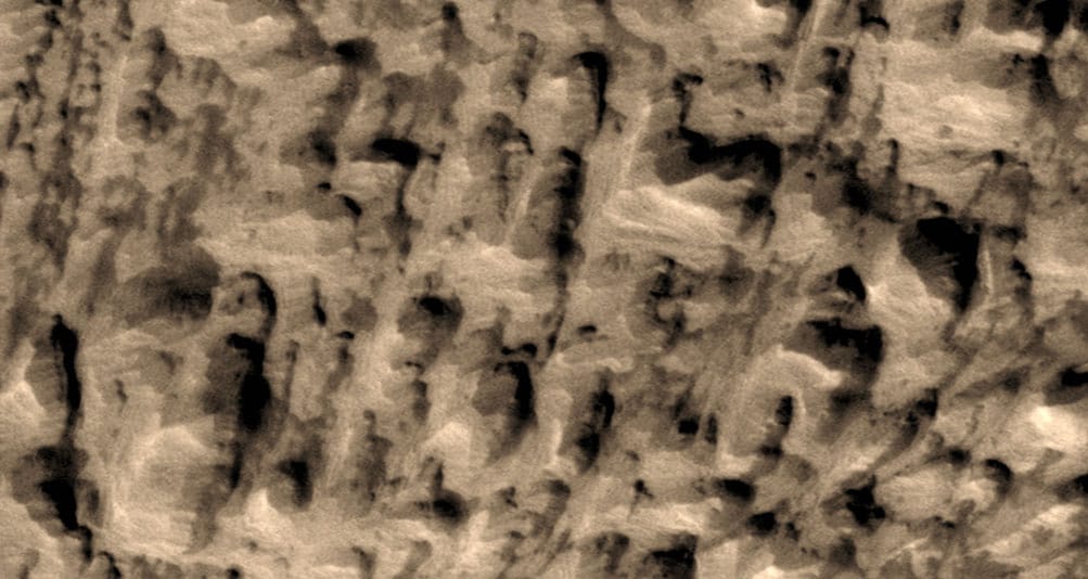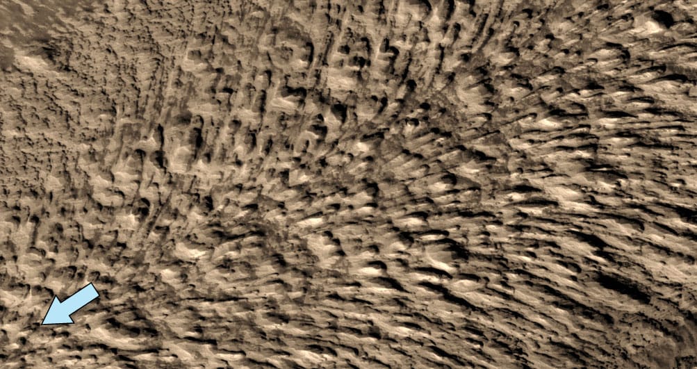 Tra le strutture rilevate ci sono forme spigolose, fratture, strutture a spina di pesce e canali sinuosi, segni evidenti di un flusso di ghiaccio che si è mosso in tempi piuttosto recenti. Queste caratteristiche si distinguono dai segni lasciati in passato da antichi fiumi, smentendo alcune interpretazioni precedenti.
